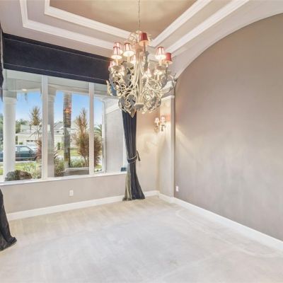 Ceiling Fan(s), Crown Molding, Eating Space In Kitchen, High Ceilings, Primary Bedroom Main Floor, Solid Surface Counters, Solid Wood Cabinets, Split Bedroom, Thermostat, Tray Ceiling(s), Walk-In Closet(s), Window Treatments