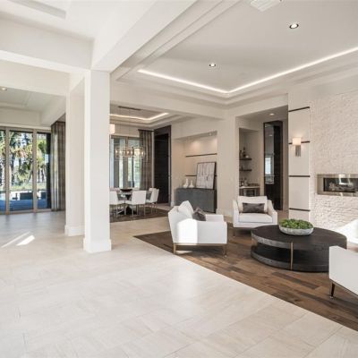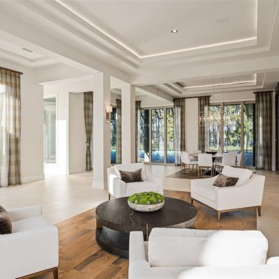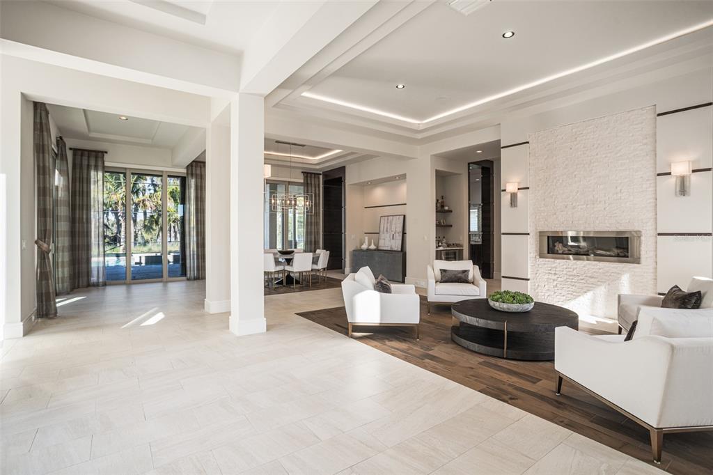 Built-in Features, Ceiling Fan(s), Coffered Ceiling(s), Crown Molding, Eating Space In Kitchen, High Ceilings, Kitchen/Family Room Combo, Living Room/Dining Room Combo, Open Floorplan, Primary Bedroom Main Floor, Stone Counters, Walk-In Closet(s), Wet Bar, Window Treatments