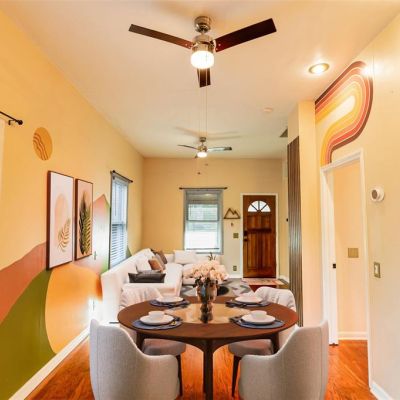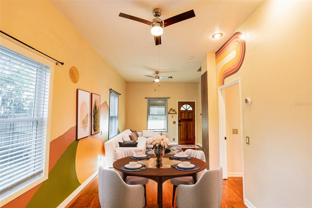 Ceiling Fan(s), Eating Space In Kitchen, High Ceilings, Living Room/Dining Room Combo, Open Floorplan, Primary Bedroom Main Floor, Solid Surface Counters, Thermostat