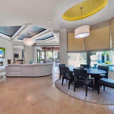 Built-in Features, Ceiling Fan(s), Central Vacuum, Coffered Ceiling(s), Crown Molding, Dry Bar, Eating Space In Kitchen, Elevator, High Ceilings, Kitchen/Family Room Combo, Open Floorplan, PrimaryBedroom Upstairs, Sauna, Skylight(s), Solid Wood Cabinets, Stone Counters, Thermostat, Tray Ceiling(s), Vaulted Ceiling(s), Walk-In Closet(s), Wet Bar, Window Treatments