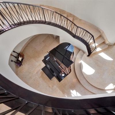 Built-in Features, Ceiling Fan(s), Central Vacuum, Coffered Ceiling(s), Crown Molding, Dry Bar, Eating Space In Kitchen, Elevator, High Ceilings, Kitchen/Family Room Combo, Open Floorplan, PrimaryBedroom Upstairs, Sauna, Skylight(s), Solid Wood Cabinets, Stone Counters, Thermostat, Tray Ceiling(s), Vaulted Ceiling(s), Walk-In Closet(s), Wet Bar, Window Treatments