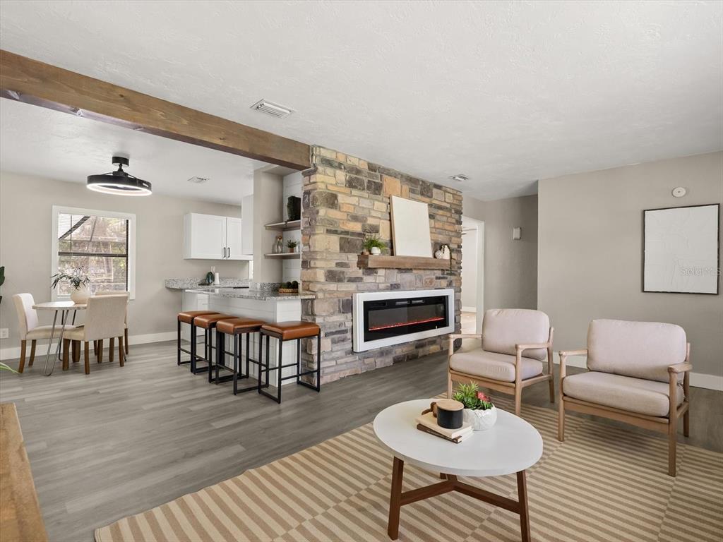 Ceiling Fan(s), Kitchen/Family Room Combo, Open Floorplan, Solid Surface Counters, Split Bedroom, Stone Counters