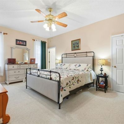 Ceiling Fan(s), Eating Space In Kitchen, High Ceilings, Solid Surface Counters, Vaulted Ceiling(s), Walk-In Closet(s), Window Treatments