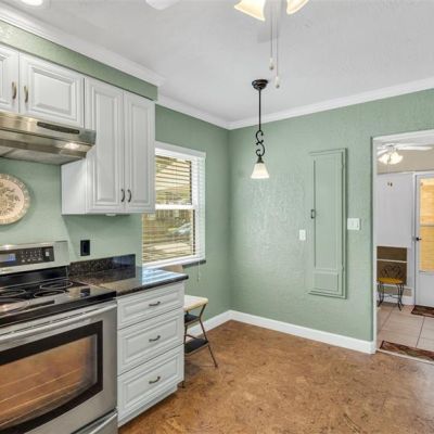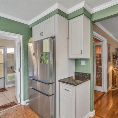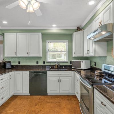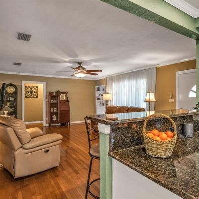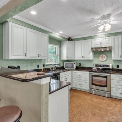 Ceiling Fan(s), Chair Rail, Crown Molding, Eating Space In Kitchen, Open Floorplan, Solid Wood Cabinets, Stone Counters