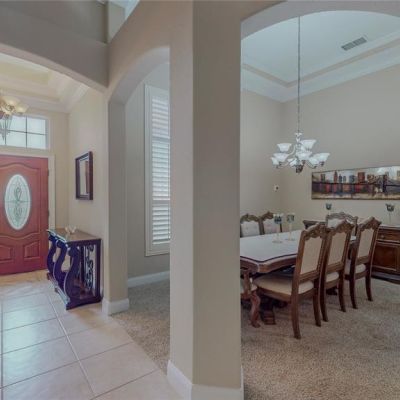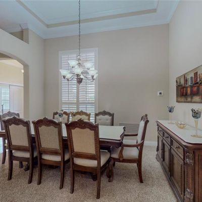 Ceiling Fan(s), Crown Molding, High Ceilings, Kitchen/Family Room Combo, Open Floorplan, Primary Bedroom Main Floor, Split Bedroom, Thermostat, Tray Ceiling(s), Walk-In Closet(s), Window Treatments
