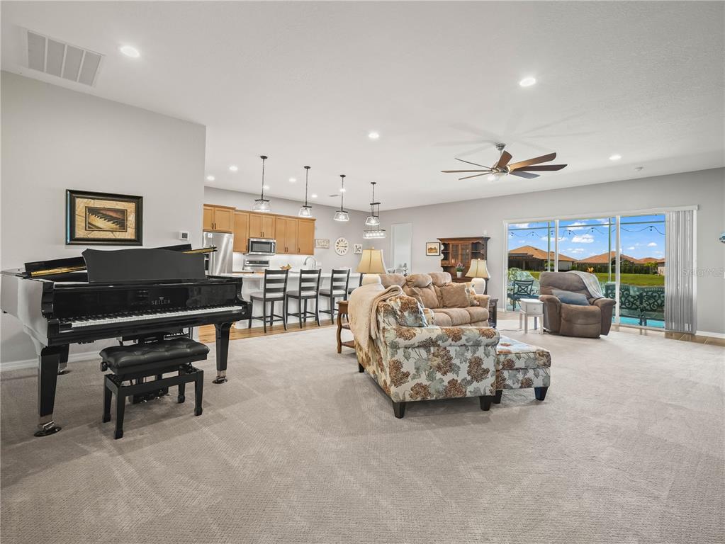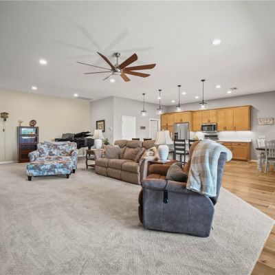 Ceiling Fan(s), Eating Space In Kitchen, High Ceilings, Kitchen/Family Room Combo, Living Room/Dining Room Combo, Open Floorplan, Solid Surface Counters, Walk-In Closet(s)