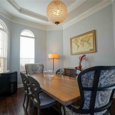 Built-in Features, Ceiling Fan(s), Coffered Ceiling(s), Crown Molding, Dry Bar, Eating Space In Kitchen, High Ceilings, Kitchen/Family Room Combo, Open Floorplan, Primary Bedroom Main Floor, Split Bedroom, Stone Counters, Thermostat, Tray Ceiling(s), Walk-In Closet(s), Window Treatments