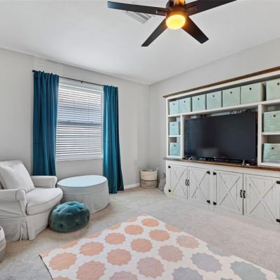 Ceiling Fan(s), Eating Space In Kitchen, High Ceilings, Kitchen/Family Room Combo, Open Floorplan, PrimaryBedroom Upstairs, Solid Surface Counters, Solid Wood Cabinets, Split Bedroom, Walk-In Closet(s)
