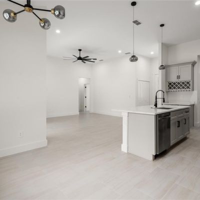 Ceiling Fan(s), Dry Bar, High Ceilings, Open Floorplan, Primary Bedroom Main Floor, PrimaryBedroom Upstairs, Solid Surface Counters, Solid Wood Cabinets, Split Bedroom, Thermostat, Tray Ceiling(s), Walk-In Closet(s)