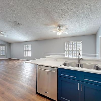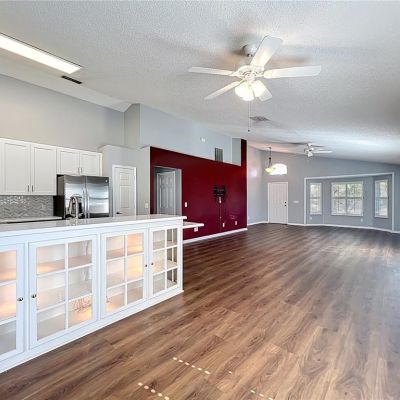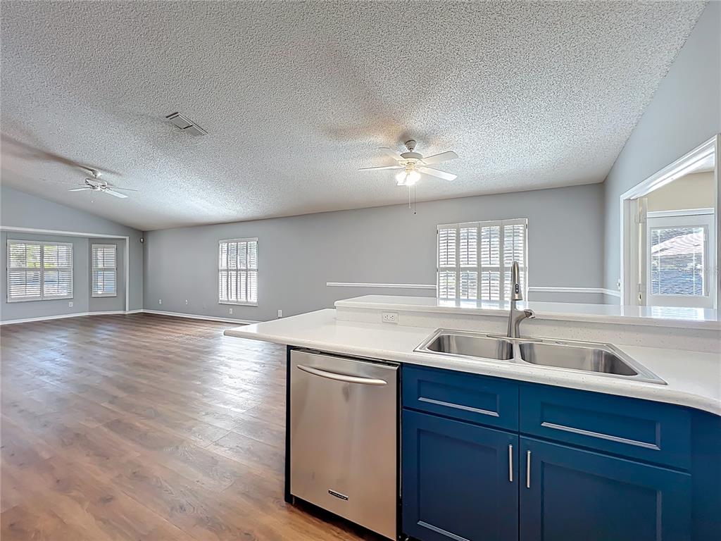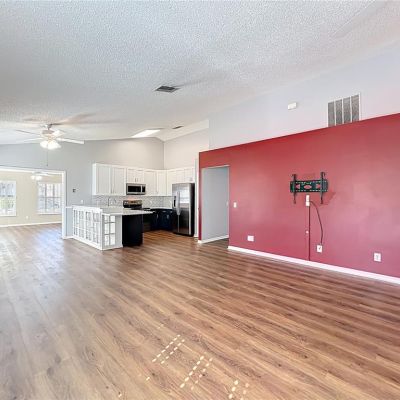 Ceiling Fan(s), High Ceilings, Kitchen/Family Room Combo, Living Room/Dining Room Combo, Open Floorplan, Stone Counters, Vaulted Ceiling(s), Walk-In Closet(s), Window Treatments