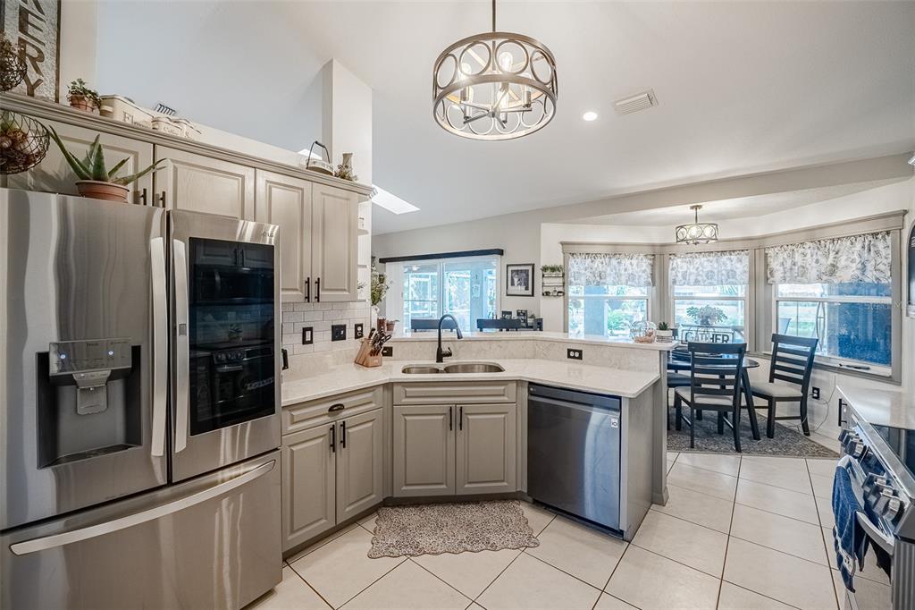 Built-in Features, Ceiling Fan(s), Coffered Ceiling(s), Eating Space In Kitchen, High Ceilings, L Dining, Split Bedroom, Stone Counters, Thermostat, Vaulted Ceiling(s), Walk-In Closet(s), Window Treatments