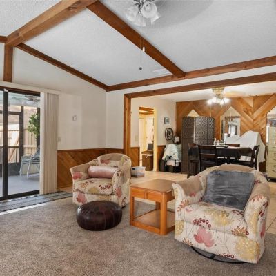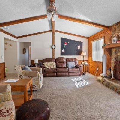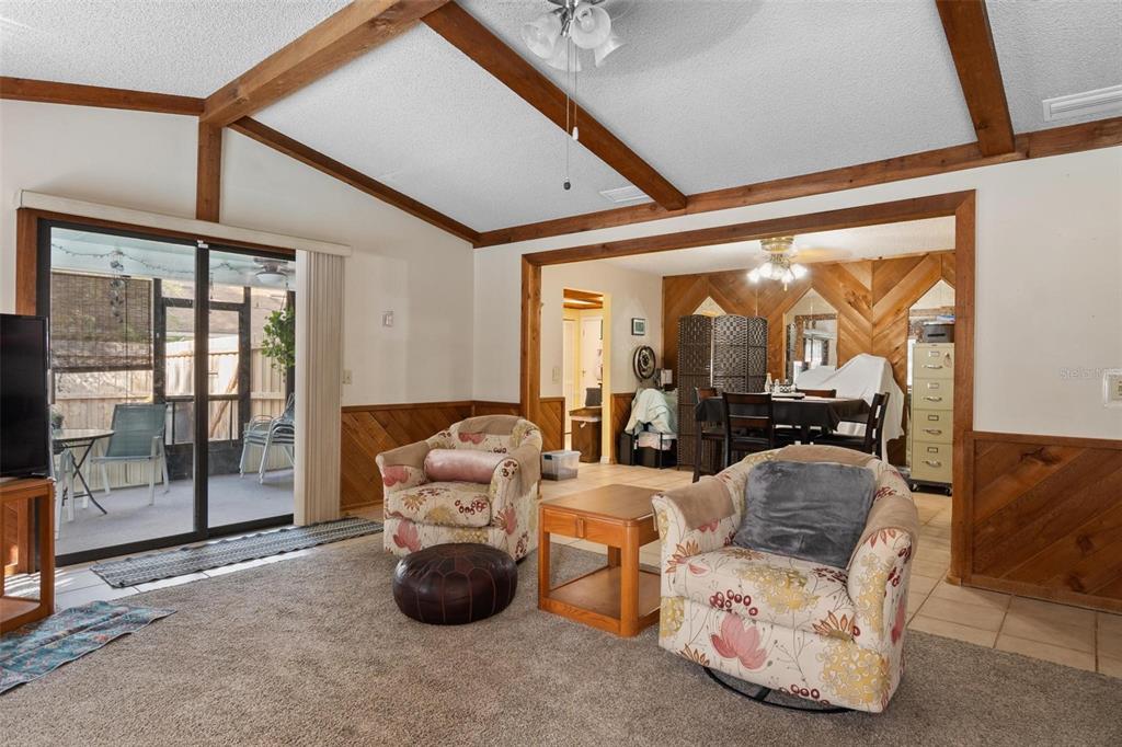 Cathedral Ceiling(s), Ceiling Fan(s), High Ceilings, Living Room/Dining Room Combo, Primary Bedroom Main Floor, Vaulted Ceiling(s), Window Treatments