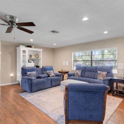 Ceiling Fan(s), Crown Molding, Kitchen/Family Room Combo, Open Floorplan, Split Bedroom, Stone Counters, Walk-In Closet(s), Window Treatments
