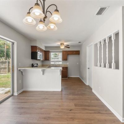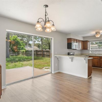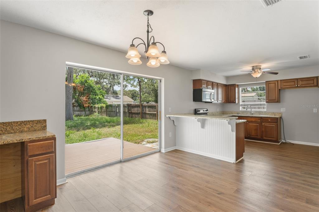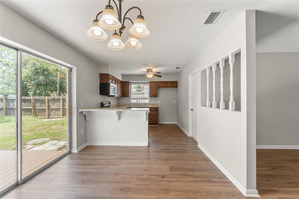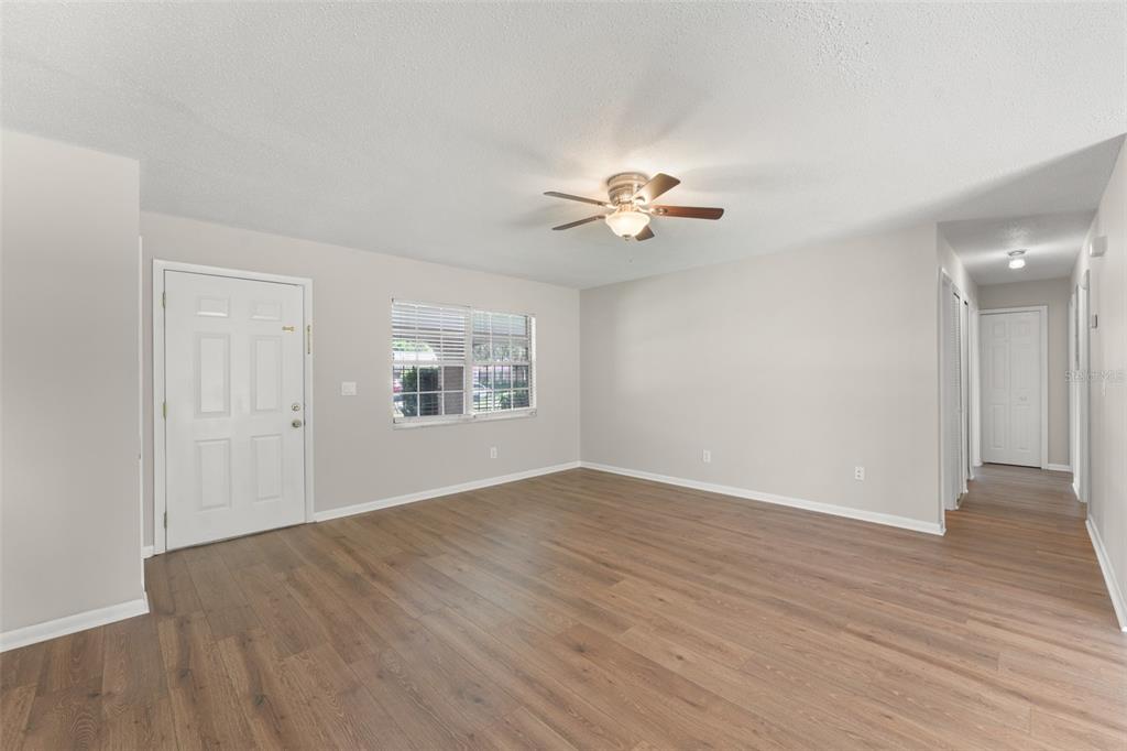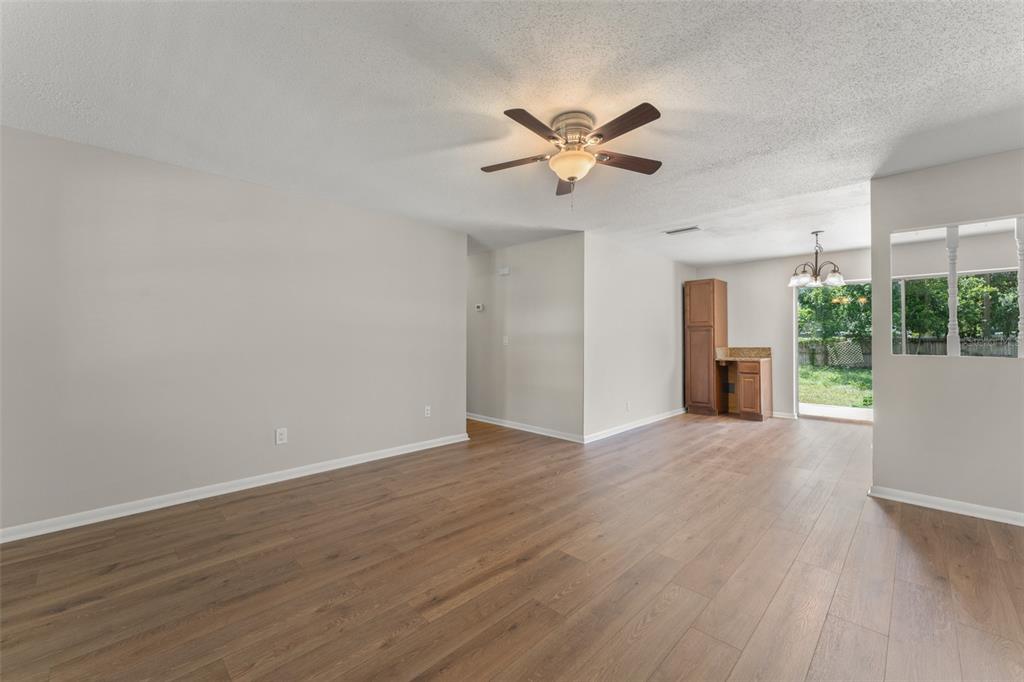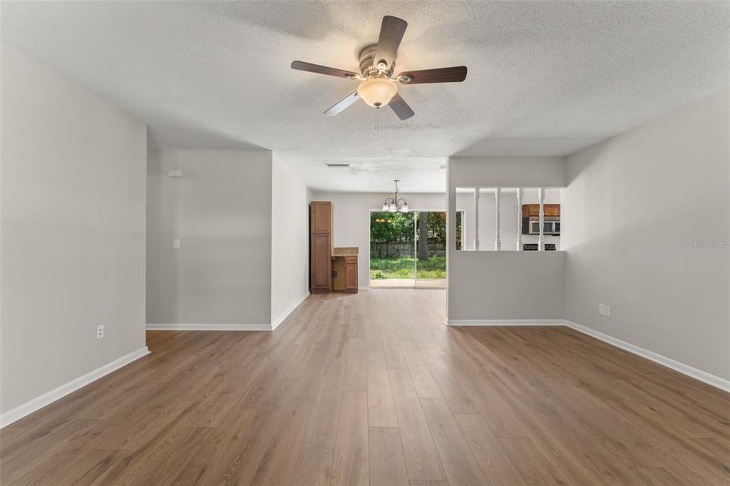 Ceiling Fan(s), Eating Space In Kitchen, Living Room/Dining Room Combo, Solid Surface Counters