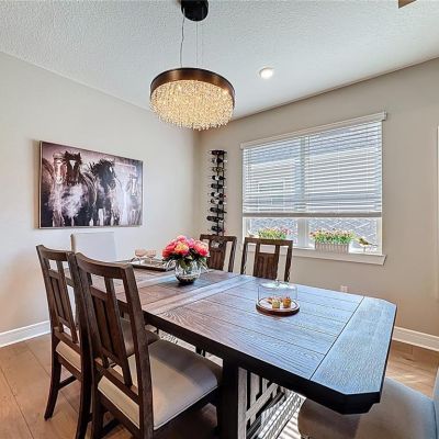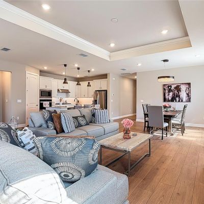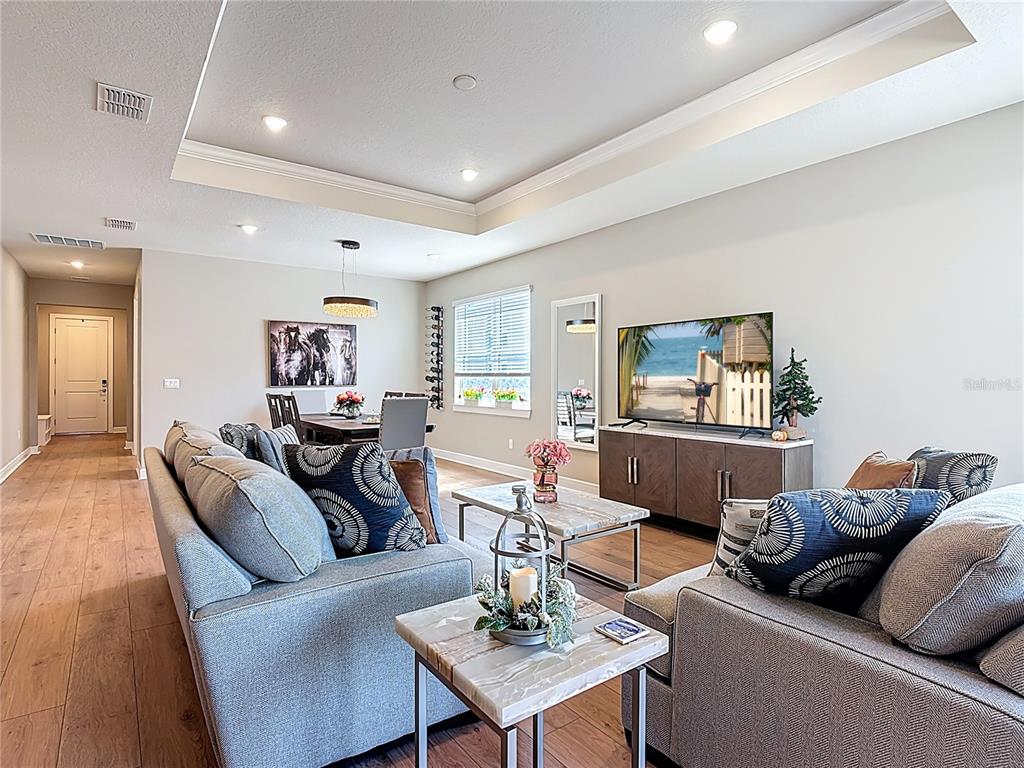 Crown Molding, High Ceilings, Living Room/Dining Room Combo, Open Floorplan, Pest Guard System, Primary Bedroom Main Floor, Smart Home, Solid Wood Cabinets, Split Bedroom, Stone Counters, Thermostat, Tray Ceiling(s), Walk-In Closet(s)