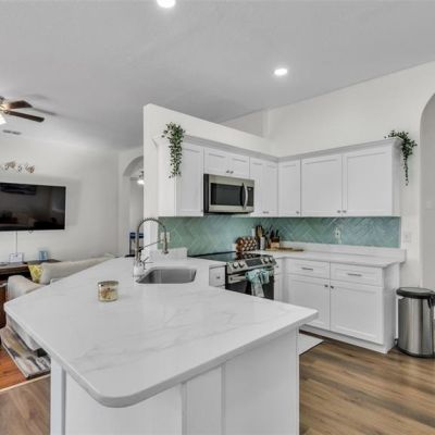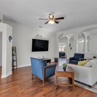 Ceiling Fan(s), Eating Space In Kitchen, High Ceilings, Kitchen/Family Room Combo, Open Floorplan, Primary Bedroom Main Floor, Solid Surface Counters, Split Bedroom, Thermostat, Walk-In Closet(s)