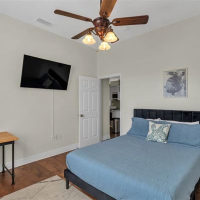 Ceiling Fan(s), Eating Space In Kitchen, High Ceilings, Kitchen/Family Room Combo, Open Floorplan, Primary Bedroom Main Floor, Solid Surface Counters, Split Bedroom, Thermostat, Walk-In Closet(s)
