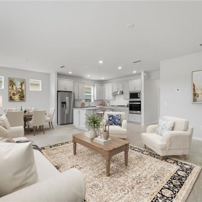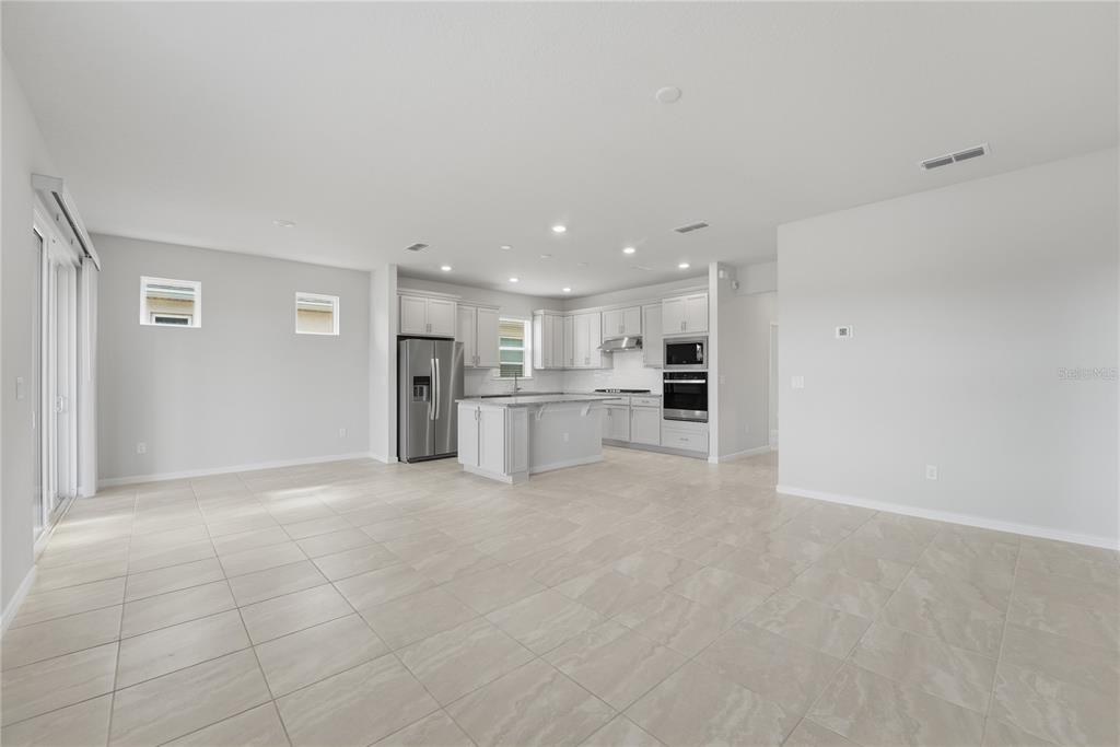 Eating Space In Kitchen, High Ceilings, Kitchen/Family Room Combo, Living Room/Dining Room Combo, Open Floorplan, Primary Bedroom Main Floor, Solid Surface Counters, Thermostat