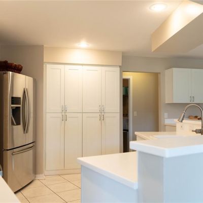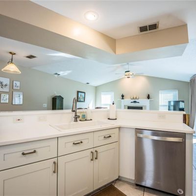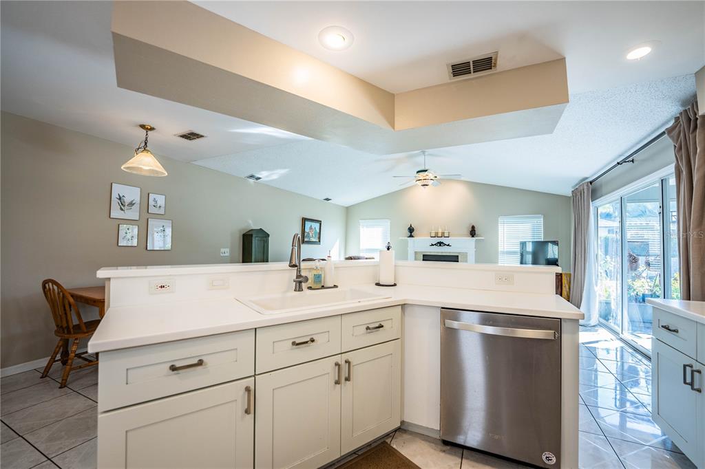 Ceiling Fan(s), Eating Space In Kitchen, Kitchen/Family Room Combo, Solid Surface Counters, Solid Wood Cabinets, Split Bedroom, Vaulted Ceiling(s)