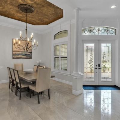 Built-in Features, Ceiling Fan(s), Coffered Ceiling(s), Crown Molding, Eating Space In Kitchen, High Ceilings, In Wall Pest System, Open Floorplan, Smart Home, Solid Surface Counters, Split Bedroom, Stone Counters, Thermostat, Tray Ceiling(s), Vaulted Ceiling(s), Walk-In Closet(s), Wet Bar, Window Treatments