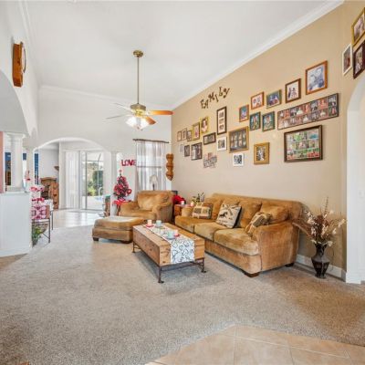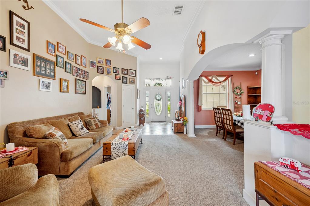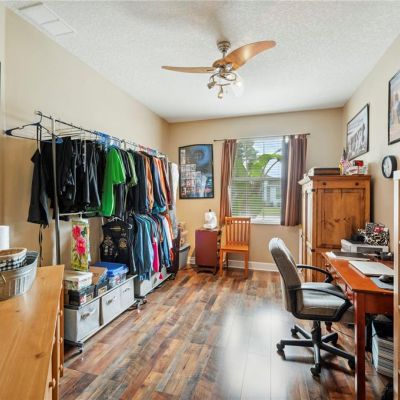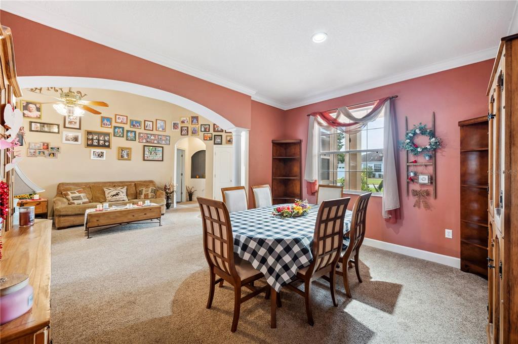 Ceiling Fan(s), Crown Molding, Eating Space In Kitchen, High Ceilings, Solid Surface Counters, Solid Wood Cabinets, Thermostat, Walk-In Closet(s)