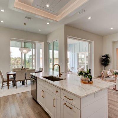 Dry Bar, Eating Space In Kitchen, High Ceilings, Kitchen/Family Room Combo, L Dining, Open Floorplan, Primary Bedroom Main Floor, Solid Surface Counters, Solid Wood Cabinets, Tray Ceiling(s), Walk-In Closet(s)
