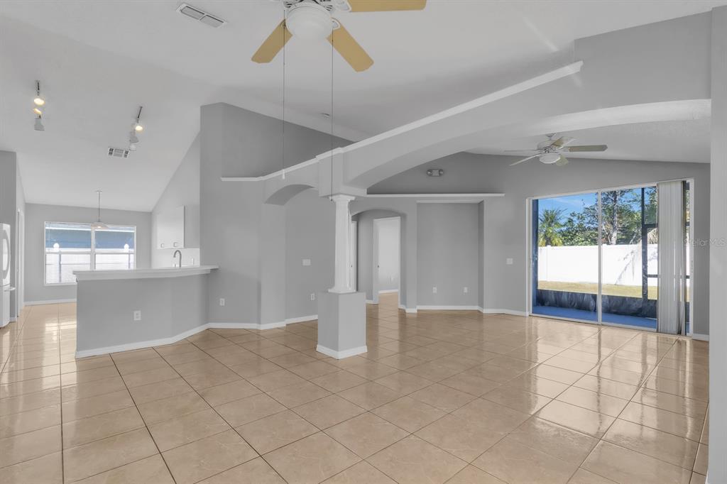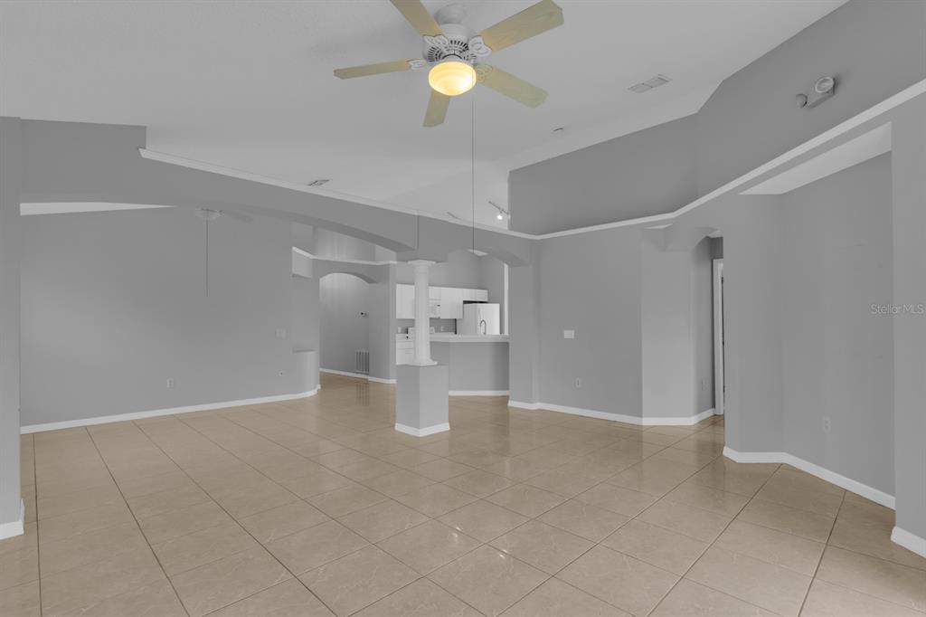 Ceiling Fan(s), High Ceilings, Living Room/Dining Room Combo, Open Floorplan, Primary Bedroom Main Floor, Thermostat, Walk-In Closet(s), Window Treatments