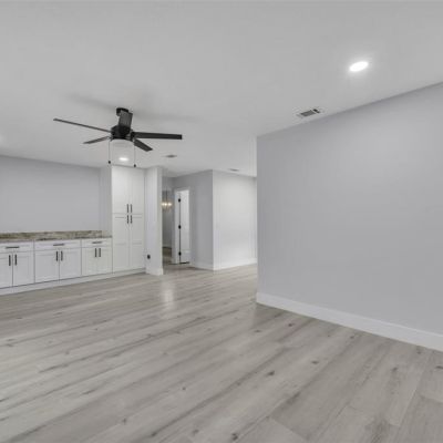 Ceiling Fan(s), Dry Bar, Eating Space In Kitchen, High Ceilings, Kitchen/Family Room Combo, Living Room/Dining Room Combo, Primary Bedroom Main Floor, Solid Surface Counters, Thermostat