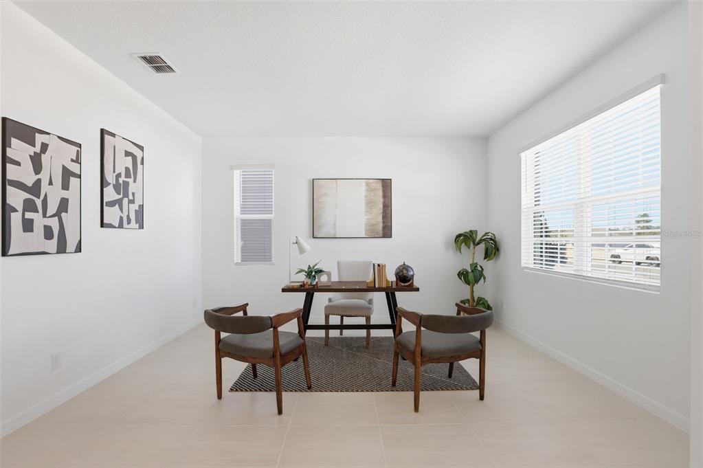 High Ceilings, Kitchen/Family Room Combo, Open Floorplan, Solid Surface Counters, Split Bedroom, Thermostat, Walk-In Closet(s)