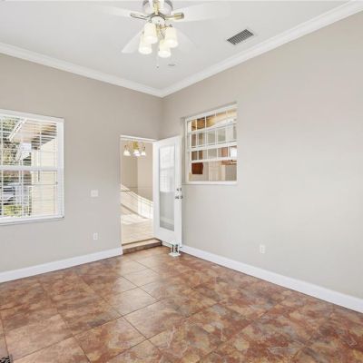 Crown Molding, High Ceilings, Kitchen/Family Room Combo, Open Floorplan, Primary Bedroom Main Floor, Solid Surface Counters