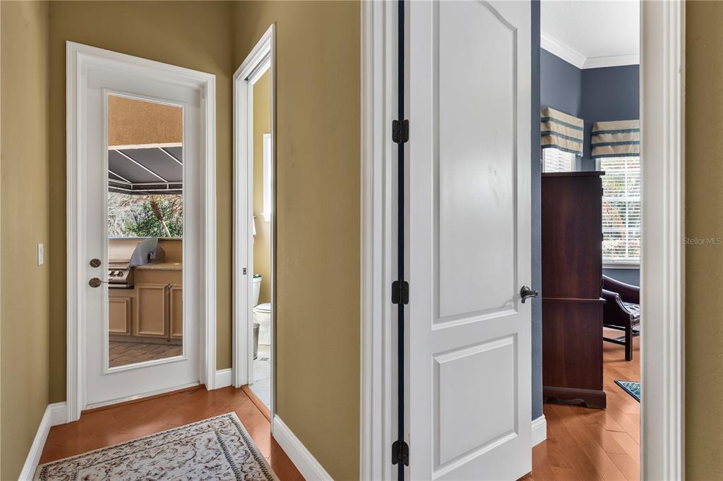 Awning(s), French Doors, Irrigation System, Lighting, Outdoor Grill, Outdoor Kitchen, Outdoor Shower, Rain Gutters