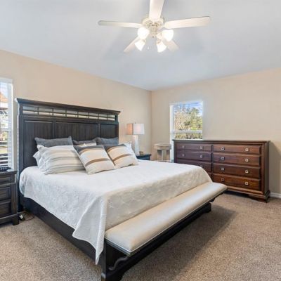 Ceiling Fan(s), Chair Rail, Eating Space In Kitchen, High Ceilings, Open Floorplan, Split Bedroom, Walk-In Closet(s)