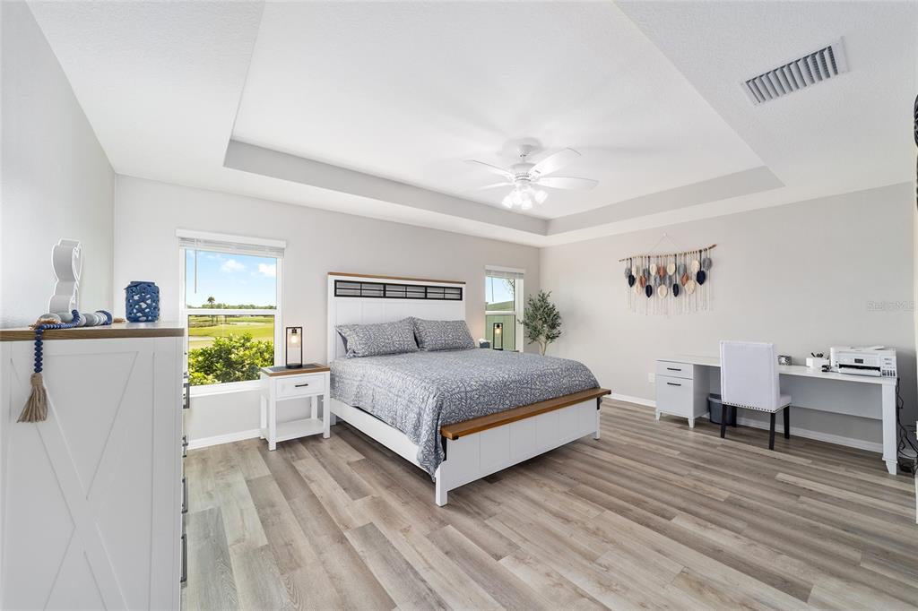 Ceiling Fan(s), Living Room/Dining Room Combo, Open Floorplan, Primary Bedroom Main Floor, Thermostat, Tray Ceiling(s), Vaulted Ceiling(s), Walk-In Closet(s), Window Treatments