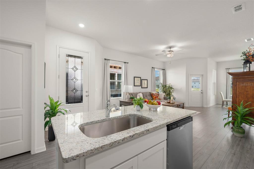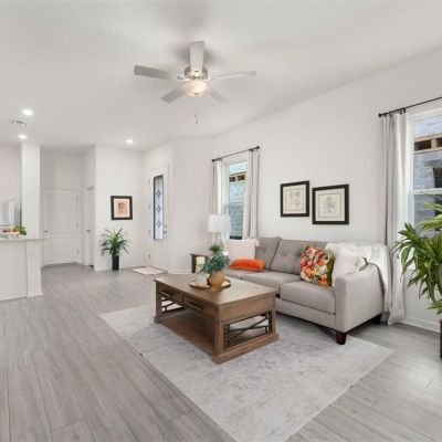 Ceiling Fan(s), Eating Space In Kitchen, High Ceilings, Kitchen/Family Room Combo, Living Room/Dining Room Combo, Open Floorplan, Pest Guard System, PrimaryBedroom Upstairs, Stone Counters, Thermostat, Walk-In Closet(s), Window Treatments