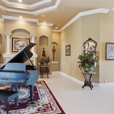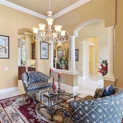 Cathedral Ceiling(s), Ceiling Fan(s), Coffered Ceiling(s), Crown Molding, Eating Space In Kitchen, High Ceilings, Kitchen/Family Room Combo, L Dining, Open Floorplan, Primary Bedroom Main Floor, Solid Wood Cabinets, Split Bedroom, Stone Counters, Thermostat, Tray Ceiling(s), Walk-In Closet(s), Wet Bar