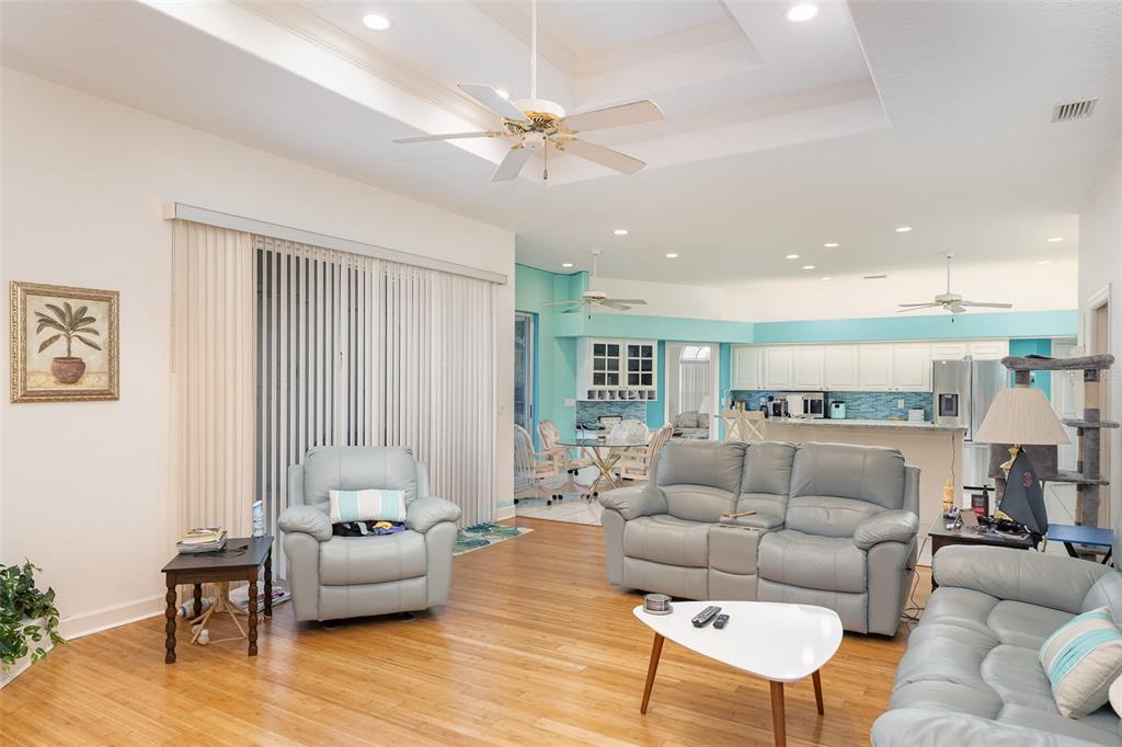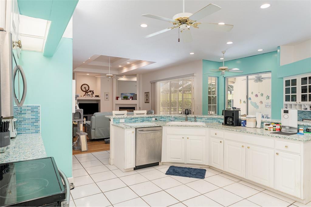 Ceiling Fan(s), Crown Molding, High Ceilings, Kitchen/Family Room Combo, Open Floorplan, Skylight(s), Tray Ceiling(s), Walk-In Closet(s)