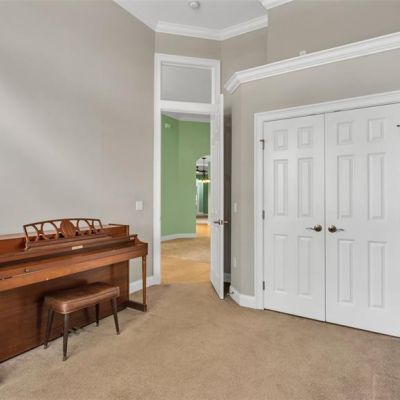 Ceiling Fan(s), Crown Molding, Eating Space In Kitchen, High Ceilings, Open Floorplan, Primary Bedroom Main Floor, Solid Surface Counters, Solid Wood Cabinets, Split Bedroom, Thermostat, Tray Ceiling(s), Walk-In Closet(s)