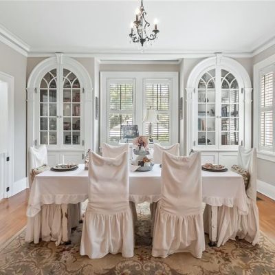 Built-in Features, Crown Molding, Eating Space In Kitchen, High Ceilings, Stone Counters, Thermostat, Vaulted Ceiling(s), Walk-In Closet(s), Window Treatments