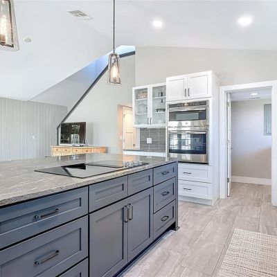 Cathedral Ceiling(s), Ceiling Fan(s), Eating Space In Kitchen, High Ceilings, Kitchen/Family Room Combo, Open Floorplan, PrimaryBedroom Upstairs, Solid Surface Counters, Solid Wood Cabinets, Split Bedroom, Stone Counters, Vaulted Ceiling(s), Walk-In Closet(s), Window Treatments