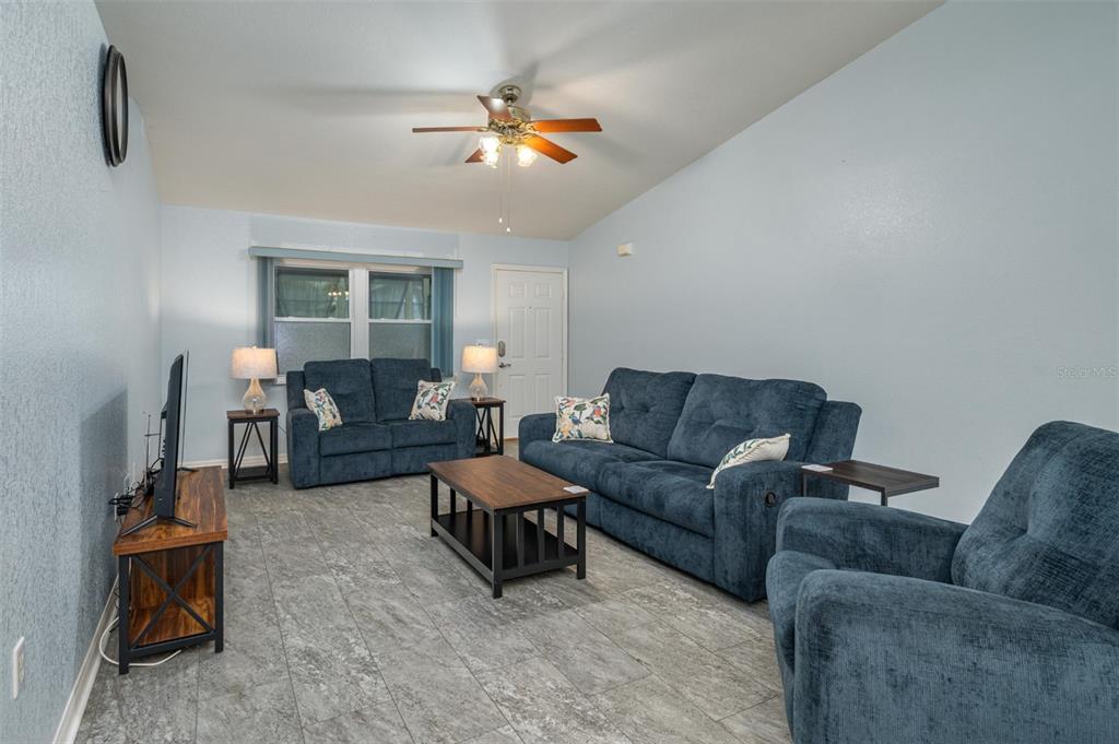Ceiling Fan(s), High Ceilings, Open Floorplan, Solid Wood Cabinets, Split Bedroom, Stone Counters, Walk-In Closet(s), Window Treatments