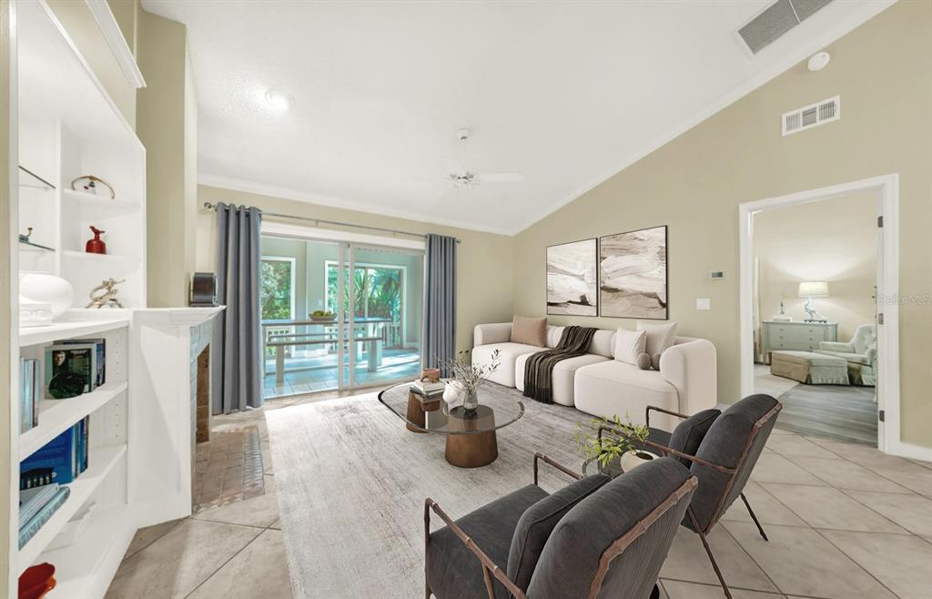 Built-in Features, Ceiling Fan(s), Split Bedroom, Stone Counters, Vaulted Ceiling(s), Walk-In Closet(s), Window Treatments
