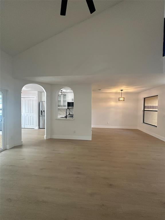 Ceiling Fan(s), Eating Space In Kitchen, High Ceilings, Open Floorplan, Primary Bedroom Main Floor, Solid Surface Counters, Solid Wood Cabinets, Split Bedroom, Thermostat, Vaulted Ceiling(s), Walk-In Closet(s)