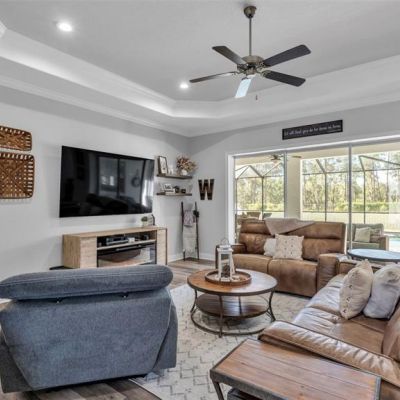 Ceiling Fan(s), Crown Molding, Kitchen/Family Room Combo, Open Floorplan, Solid Surface Counters, Split Bedroom, Walk-In Closet(s), Window Treatments