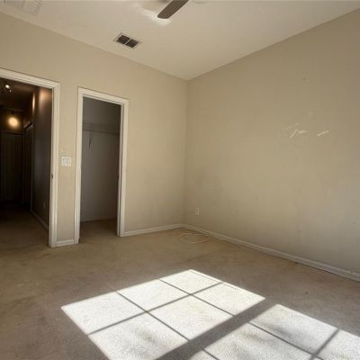 Ceiling Fan(s), Living Room/Dining Room Combo, Open Floorplan, PrimaryBedroom Upstairs, Solid Surface Counters, Solid Wood Cabinets, Thermostat, Walk-In Closet(s), Window Treatments