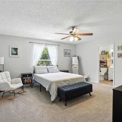 Cathedral Ceiling(s), Ceiling Fan(s), Eating Space In Kitchen, High Ceilings, PrimaryBedroom Upstairs, Solid Wood Cabinets, Split Bedroom, Stone Counters, Walk-In Closet(s)