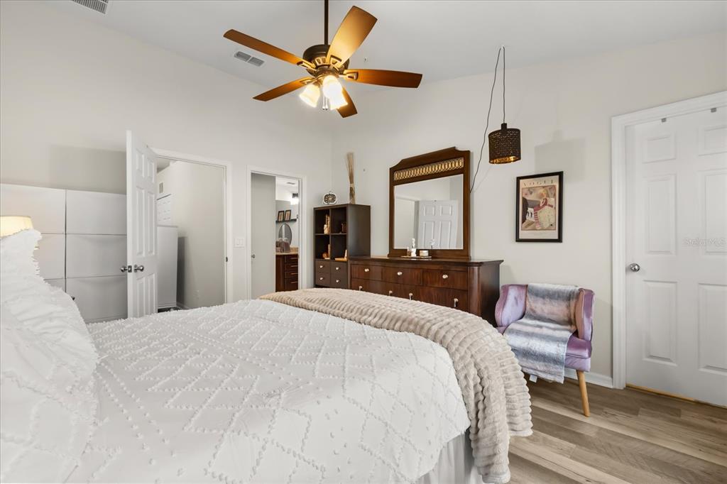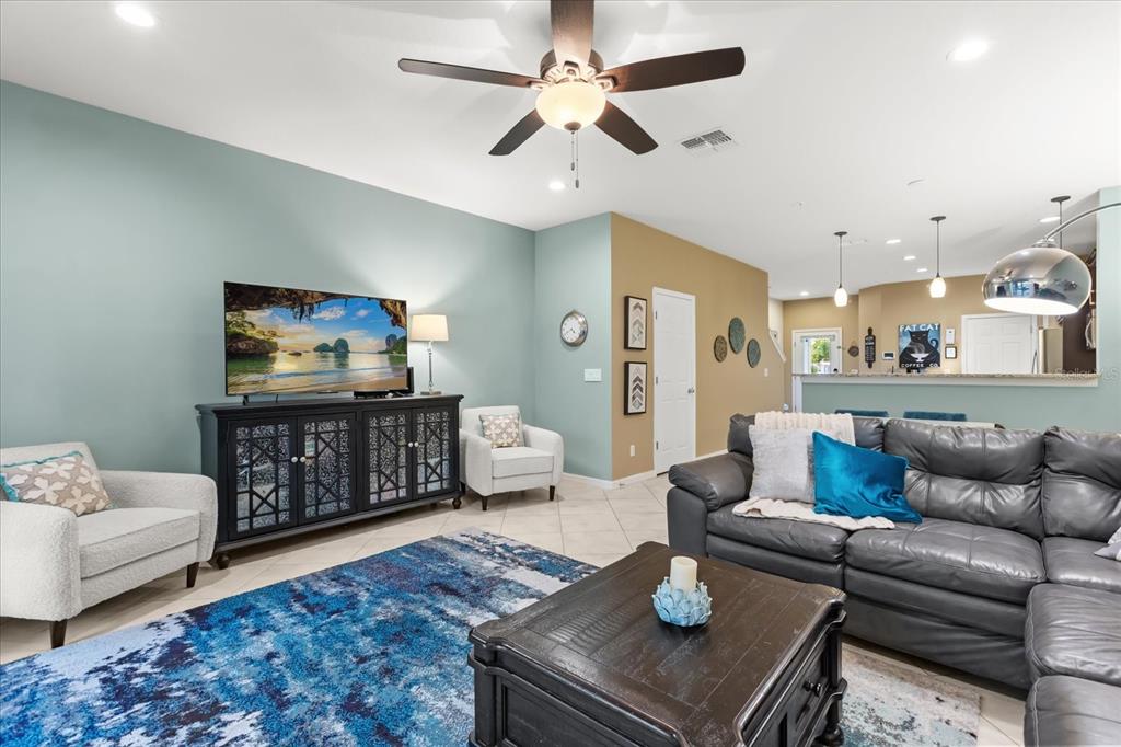 Ceiling Fan(s), High Ceilings, Living Room/Dining Room Combo, Open Floorplan, PrimaryBedroom Upstairs, Stone Counters, Walk-In Closet(s)