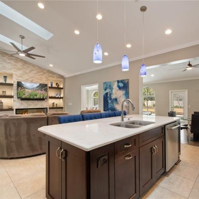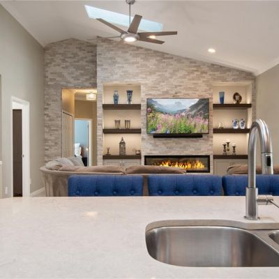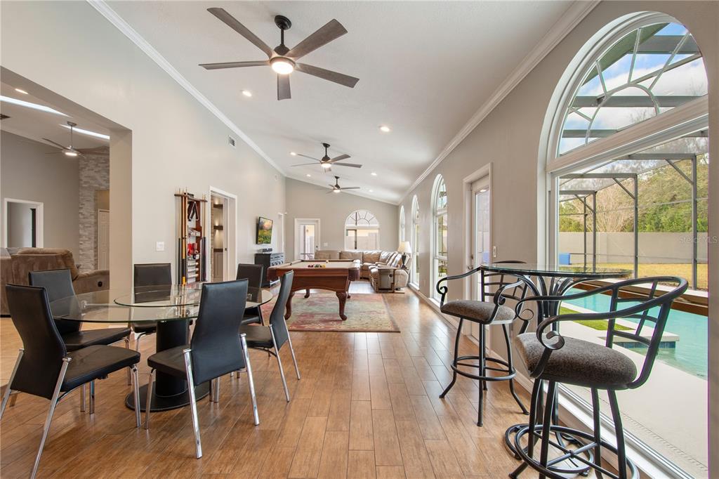 Attic Fan, Cathedral Ceiling(s), Ceiling Fan(s), Crown Molding, Kitchen/Family Room Combo, Stone Counters, Thermostat Attic Fan, Vaulted Ceiling(s), Walk-In Closet(s), Window Treatments
