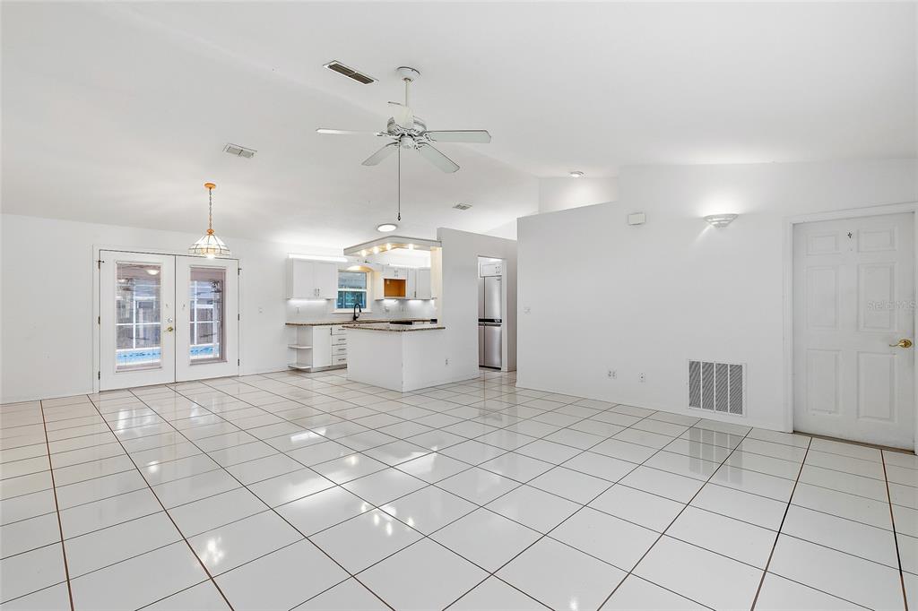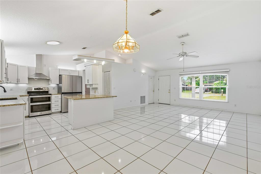 Attic Fan, Cathedral Ceiling(s), Ceiling Fan(s), Eating Space In Kitchen, High Ceilings, Kitchen/Family Room Combo, Living Room/Dining Room Combo, Open Floorplan, Primary Bedroom Main Floor, Split Bedroom, Stone Counters, Thermostat, Vaulted Ceiling(s), Walk-In Closet(s), Window Treatments