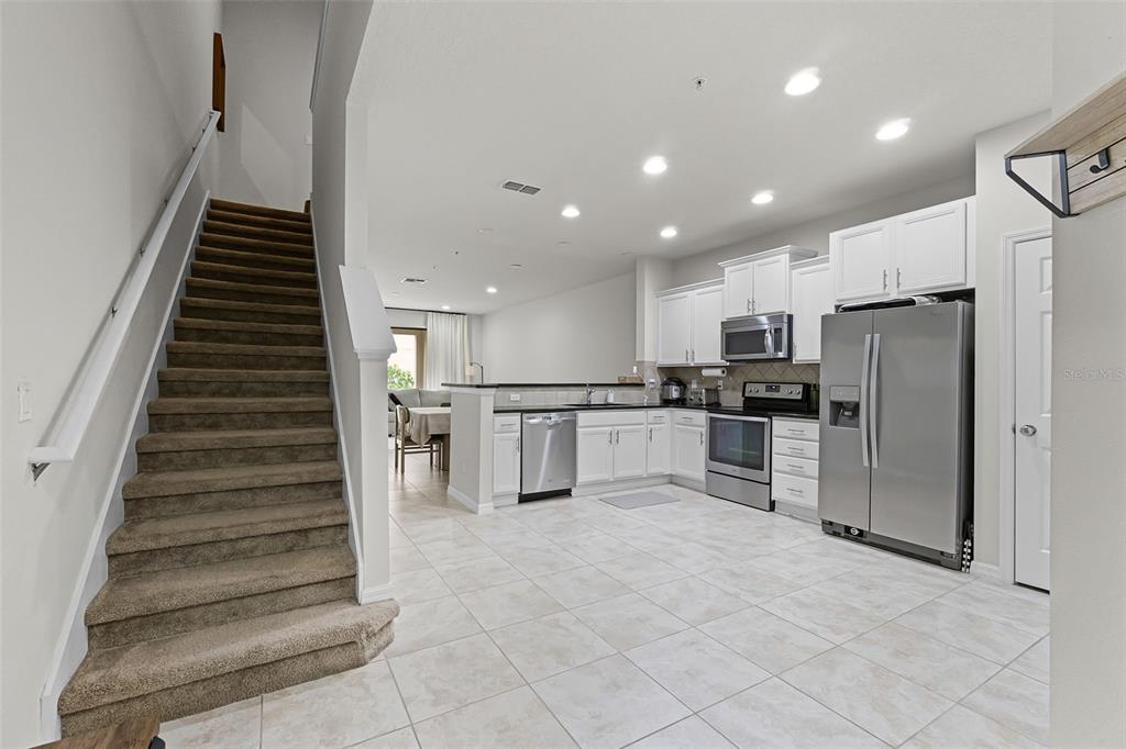 Kitchen/Family Room Combo, Open Floorplan, Solid Surface Counters, Window Treatments