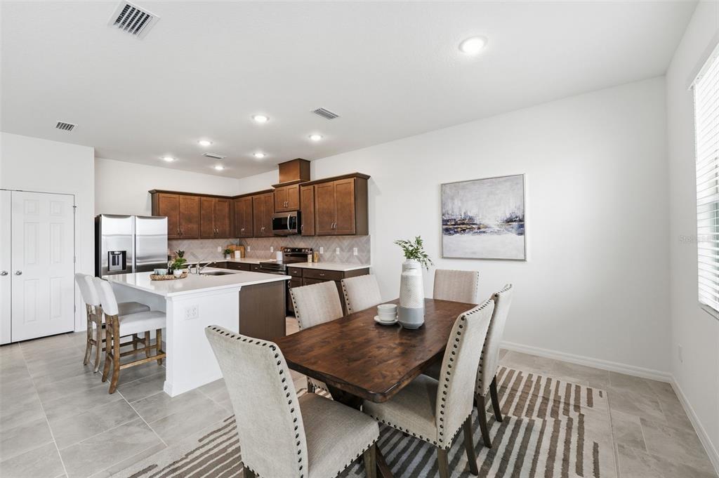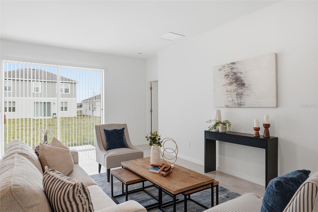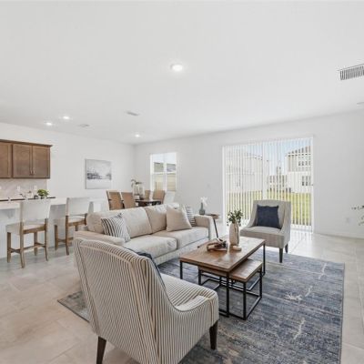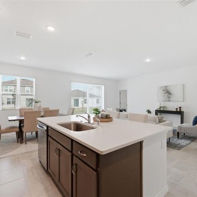 High Ceilings, Kitchen/Family Room Combo, Open Floorplan, Solid Surface Counters, Split Bedroom, Thermostat, Walk-In Closet(s)